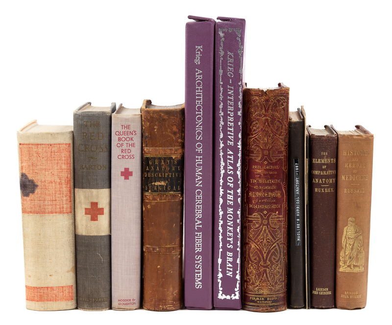 BARTON, Clara. The Red Cross in Peace and War. N.p.: American Historical Press, 1899. -- GRAY, Henry. Anatomy, Descriptive and Surgical. Philadelphia: Henry C. Lea, 1870. -- HUXLEY, Thomas Henry. Lectures on the Elements of Contemporary Anatomy. London: John Churchill and Sons, 1894. -- PIPER, R. U., editor. The Plates of Maclises' Surgical Anatomy. Boston: John P. Jewett and Company, 1857. -- RUSSELL, J. Rutherfurd. The History and Heroes of the Art of Medicine. London: John Murray, 1861. -- And 7 others. Together, 12 works in 12 volumes, contemporary cloth or calf, condition generally fine, complete list available on request.