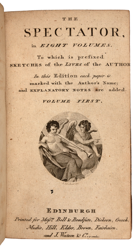 [THE SPECTATOR]. ADDISON, Joseph. -- STEELE, Richard. The Spectator. Edinburgh: for Messrs. Bell & Bradfute et al, [1800?].