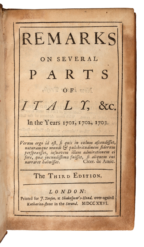 [With:] ADDISON, Joseph. Remarks on Several Parts of Italy, &c. London: for J. Tonson, 1726. Contemporary panelled calf gilt. Third edition.