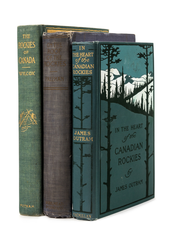 WILCOX, Walter Dwight (1869-1949). The Rockies of Canada. New York: J.P. Putnam's Sons, 1900. 8vo. Frontispiece, title printed in red and black, 2 folding maps in rear pocket, numerous photogravure plates. Original publisher's green cloth gilt, top edge gilt, others uncut. -- OUTRAM, James (1803-1863). In the Heart of the Canadian Rockies. New York: Macmillan Company, 1923. 8vo. Frontispiece, one fold-out map, numerous plates and in-text illustrations. Original publisher's green pictorial cloth. -- FREEMAN, Lewis R. (1878-1960). On the Roof of the Rockies. The Great Columbian Icefield of the Canadian Rockies. New York: Dodd, Mead and Company, 1925. Frontispiece, numerous photogravure plates. Original pictorial blue cloth gilt, 2 edges uncut FIRST EDITION. - Condition generally fine.