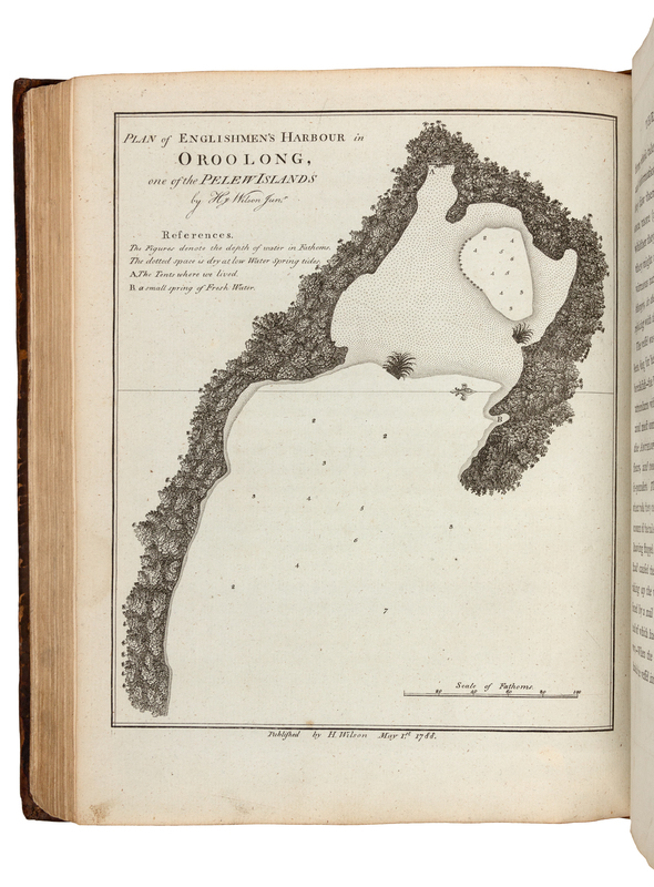 Third edition. "'In 1783, the Antelope, commanded by Captain Henry Wilson, ran onto a reef near one of the Palau Islands, a previously unexplored group, and was wrecked. The entire crew managed to get safely ashore, where they were well treated by the natives and eventually managed to build a small vessel from the wreck, in which they reached Macao" (Hill). Cox II, pp 302-303; ESTC N16075; Hill 907.