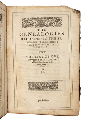 Authorized edition, with "she went" in Ruth III:15. See ESTC S124527. [Issued with:] SPEED, John (1551/52-1629). The genealogies recorded in the Sacred Scriptures, according to euery familie and tribe. With the line of our Sauiour Iesus Christ obserued from Adam, to the blessed Virgin Mary. By J.S. [London : Printed by John Beale, 1612?]. (Lacking map.) See ESTC S483560.