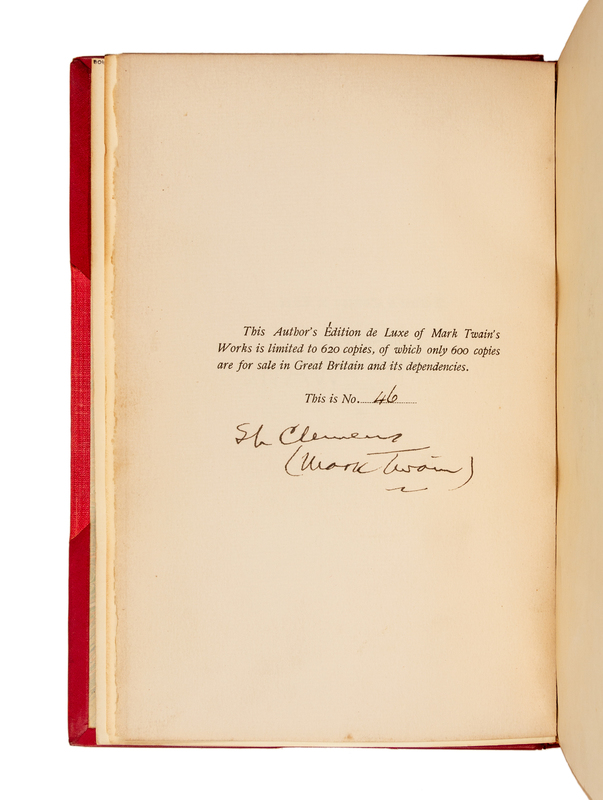 LIMITED EDITION, number 46 or 41 of 620 copies of the "Author's Edition de Luxe." SIGNED BY CLEMENS: SL Clemens (Mark Twain).