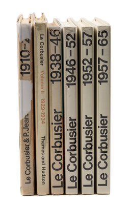 BOESIGER, W. (1904-1990), O. STORNOROV (1905-1907). Le Corbusier et Pierre Jeanneret: Oeuvre Complète 1910-1929. [Volume 1]. Zurich: Les Editions d'Architecture, 1964. -- BOESIGER, W., editor. Le Corbusier: The Complete Architectural Works, 1929-1934. Volume 2. London: Thames and Hudson, 1966. -- Le Corbusier Oeuvre Complète 1938-1946. [Volume 4]. Zurich: Les Editions d'Architecture, 1946. -- Le Corbusier: Oeuvre complète 1946-1952 Volume 5. Zurich: Les Editions d'Architecture, 1953. -- Le Corbusier et son atelier rue de Sèvres 35. Oeuvre Complète 1952-1957. Volume 6. Zurich: Les Editions d'Architecture, 1957. -- Le Corbusier et son atelier rue de Sèvres 35. Oeuvre Complète 1957-1965. Volume 7. Zurich: Les Editions d'Architecture, 1965. -- And 4 others. Together, 10 works in 10 volumes, all in original publisher's bindings, most in original dust jacket, condition generally good, complete list available upon request.