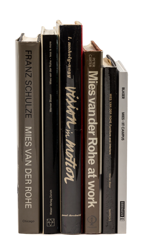 MOHOLY-NAGY, László (1895-1946). Vision in Motion. Chicago: Paul Theobuld, 1947. -- CARTER, Peter (1927-2017). Mies van der Rohe at Work. New York: Praeger Publishers, 1974. -- BLASER, Werner (b. 1924). Mies van der Rohe Furniture and Interiors. Woodbury, NY: Barron's, 1982. -- SCHULZE, Franz (b. 1927). Mies Van Der Rohe: A Critical Biography. Chicago: The University of Chicago Press, 1985. -- BLASER, Werner (b. 1924). Mies van der Rohe - Less is More. New York: Waser Verlag Zurich, 1986. -- BLASER, Werner (b. 1924). Mies van der Rohe: IIT Campus, Illinois Institute of Technology, Chicago. Basel: Birkhauser, Publishers for Architecture, 2002. -- And 9 others. Together, 15 works in 15 volumes. All in original publisher's bindings, most with original dust jackets, condition generally fine.