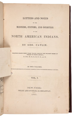 CATLIN, George (1796-1872). Letters and Notes on the Manners, Customs, and Condition of the North American Indians. New York: Wiley and Putnam, 1841.