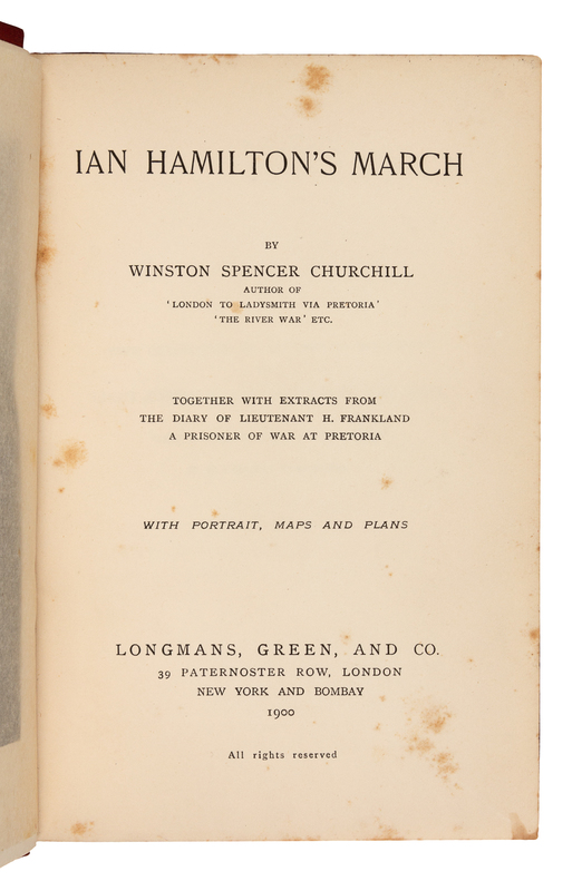 CHURCHILL, Winston Spencer (1874-1965). Ian Hamilton’s March. London, New York, and Bombay: Longmans, Green, and Co., 1900.