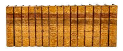 A group of historical texts. Ferdinand and Isabella, Vol. I-III. Eighth edition, revised. London: Richard Bentley, 1857. Conquest of Mexico, Vol. I-III. Seventh edition. London: Richard Bentley, 1855. Conquest of Peru, Vol. I-III. Fifth edition. London: Richard Bentley, 1857. Charles the Fifth, Vol. I-II. (no edition noted). London: George Routledge & Co., Farringdon Street. Phillip the Second, Vol. I-III. (no edition noted). London: Routledge, Warnes, and Routledge, Farringdon Street, 1859. Critical and Historical Essays. Fourth edition. London: Richard Bentley, New Burlington Street, 1856. All in the same binding.
