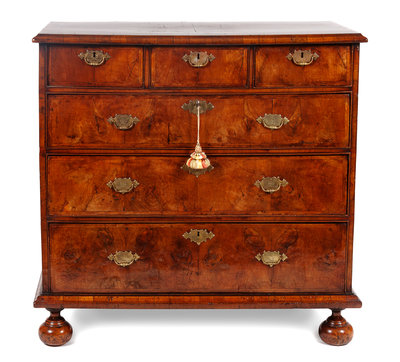 A William and Mary Walnut Chest of Drawers Height 39 x width 39 3/4 x depth 21 inches.