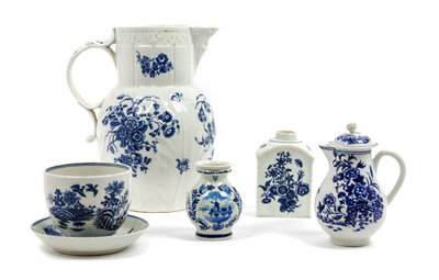 A Group of Transferware Porcelain Table Articles Height of tallest 8 7/8 inches.