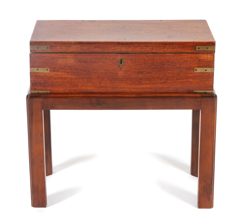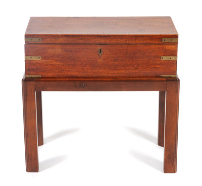 A George III Brass Mounted Mahogany Writing Box Height overall 19 x width 19 3/4 x depth 9 3/4 inches.