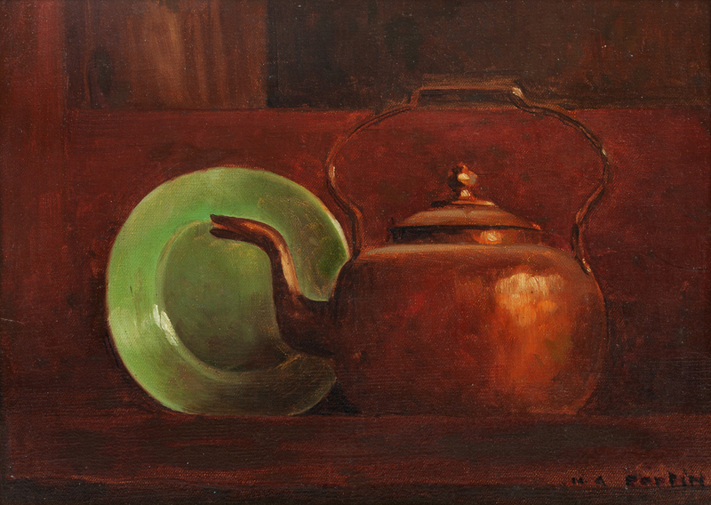 Marc-Aurele Fortin, (Canadian, 1888-1970), Copper Kettle with Green Plate