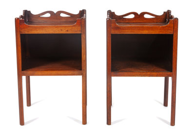 together with a reproduction made to match, each raised on molded square legs.