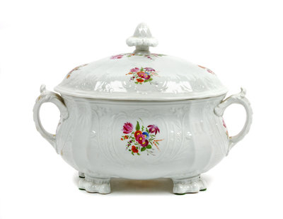 with painted flowers on a white ground.