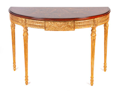 A Pair of Demilune Console Tables Height 32 x width 37 x depth 21 inches.
