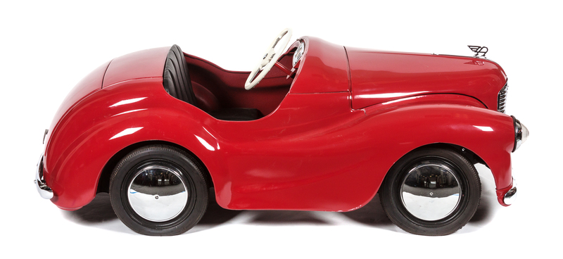 produced by the Austion Junior Car Factory, with working headlights and horn, detachable wheels, leather seating, chrome bumpers, and an opening bonnet and boot, complete with a Flying A ornament.