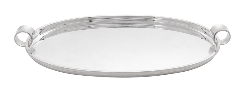 A Danish Silver Tray, Hans Hansen, Copenhagen, with applied loop handles.