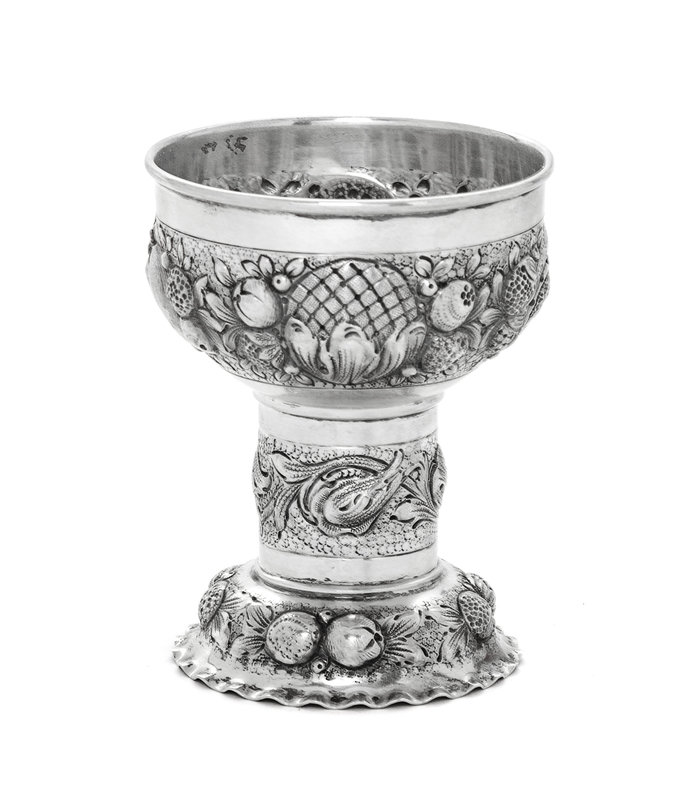 A Dutch Silver Cup, 19TH CENTURY, worked with bands of repousse fruit.