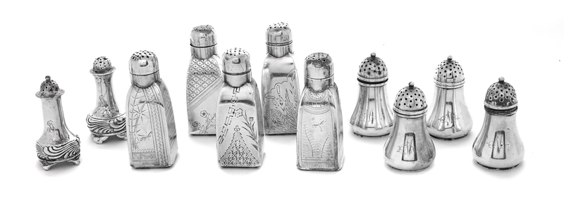 A Collection of American and English Silver Salt and Pepper Shakers, Tiffany & Co., Gorham Mfg. Co., and English Sterling, of various s