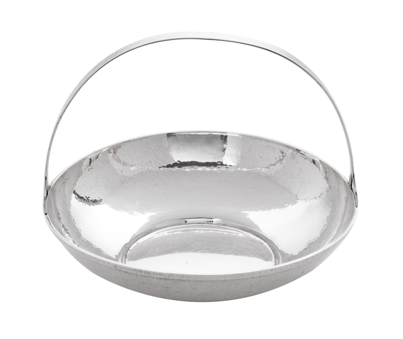 An American Silver Handled Basket, Lebolt & Co., Chicago, IL, with hammered surface and applied monogram.