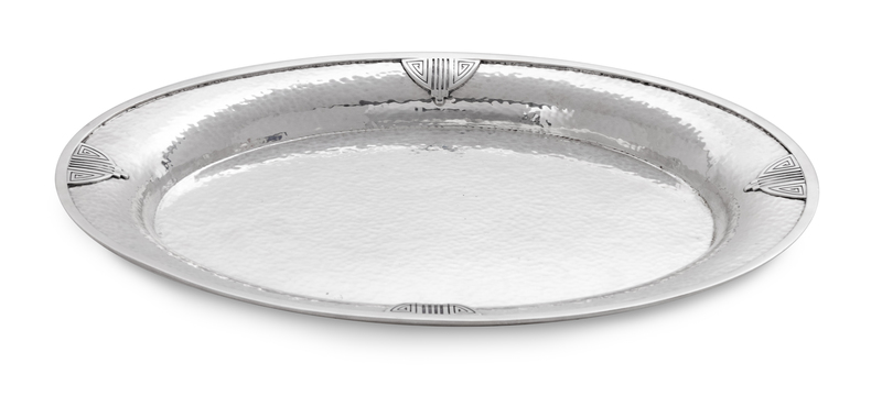 An American Silver Plate, R. Wallace & Sons, Wallingford, CT, with hammered surface and applied decoration.