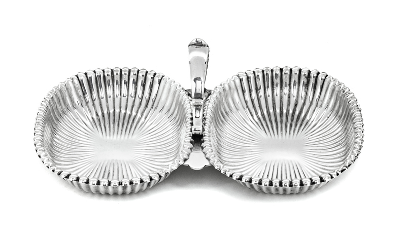 An Amerian Silver Double Salt Cellar, Gorham Mfg. Co., Providence, RI, with handle in center.