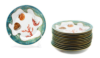 Fourteen Lynn Chase Porcelain Salad Plates Diameter: 8 3/4 inches.