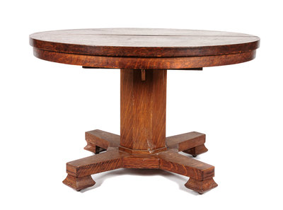 An Arts & Crafts Oak Round Extension Table Height 30 1/2 x diameter 48 inches.