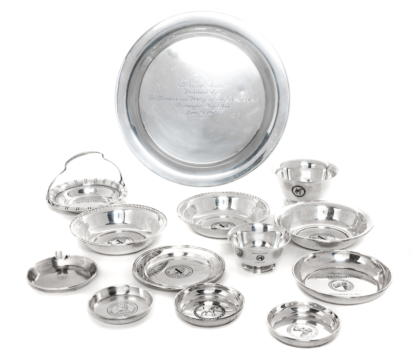 Fourteen American Silver Airedale Terrier Articles, Various Makers, comprising a variety of trophy bowls and trays.