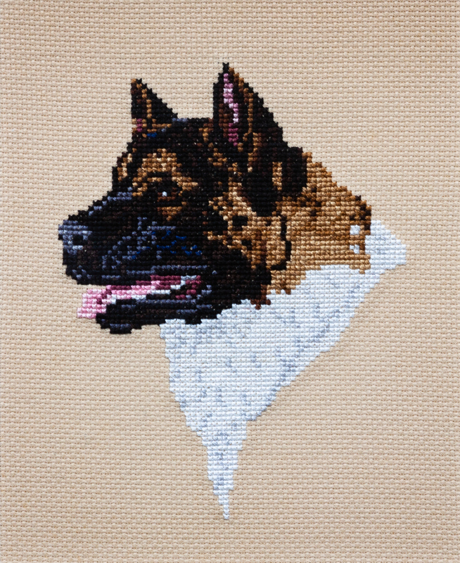 A Cross-Stitch depicting an Akita 8 x 6 1/2 inches.