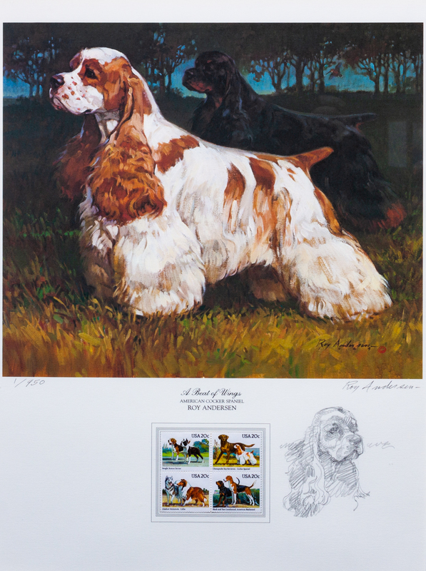 Roy Andersen, A Beat of Wings, 1984, edition 1/950 with stamps and graphite drawing.