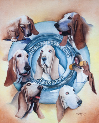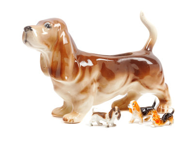 A Group of Four Basset Hound Ceramic Figures Width of widest 11 1/2 inches.