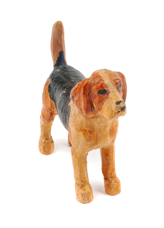 A Wooden Beagle Figure Height 1 5/8 inches.