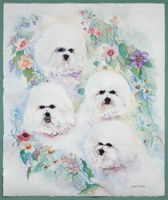 Diane Ayres Head Studies Four Bichons, 1991.