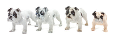 A Group of Four Porcelain Bulldogs Width of widest 7 1/2 inches.