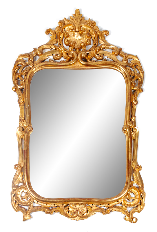 A Louis XV Style Giltwood Mirror Height 58 x width 38 inches.