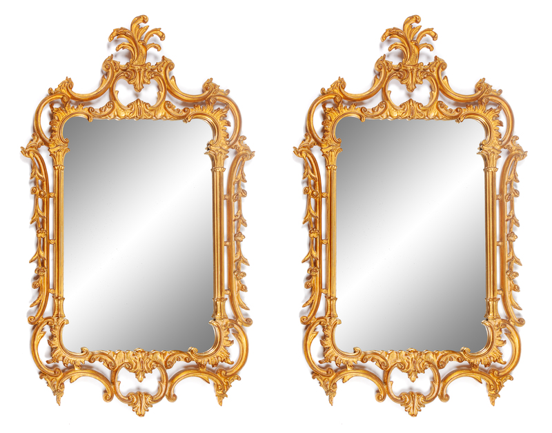 A Pair of Louis XV Style Gilt Mirrors Height 50 x width 29 inches.
