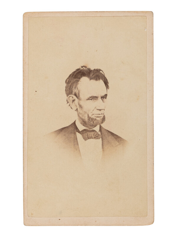 [LINCOLN, Abraham (1809-1865]. WARREN, Henry F., photographer. CDV of the last known photograph of Lincoln, ca 6 March 1865.