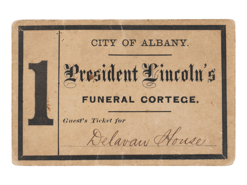 This ticket allowed the Governor accommodations at the Delavan House in Albany when the Lincoln funeral train passed through town.