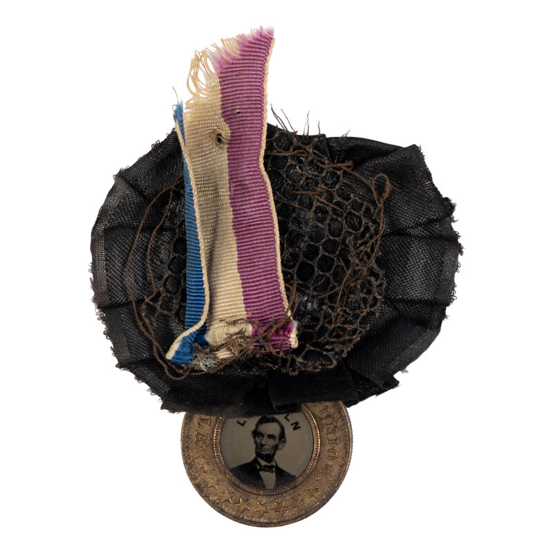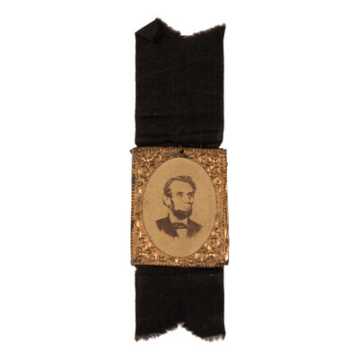 The United States was a nation already deep in the throes of grief on 14 April 1865, with the recently concluded Civil War having claimed the lives of nearly 700,000 men over the course of four short years. The assassination of Abraham Lincoln brought a swift and brutal end to any relief the country may have been feeling, and Americans across the country made use of any available images or mementos they had of the murdered president to display their grief to the world. With demand far outpacing supply and means, many repurposed campaign badges and other small items, often doing little more than adding a black ribbon or a piece of cloth.