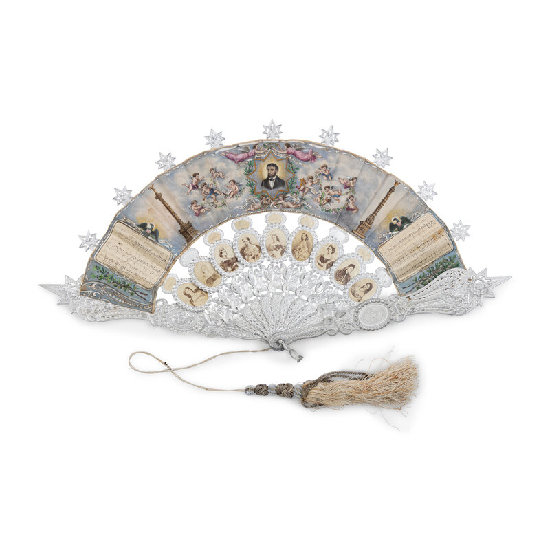 [LINCOLN MOURNING]. A unique Lincoln mourning fan produced for display at the 1867 Paris Exposition. Habana/Paris: Designed by August E. A. Luce for Bartolomé Crespo De Borbon, 1866.