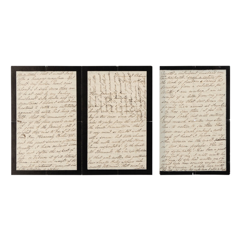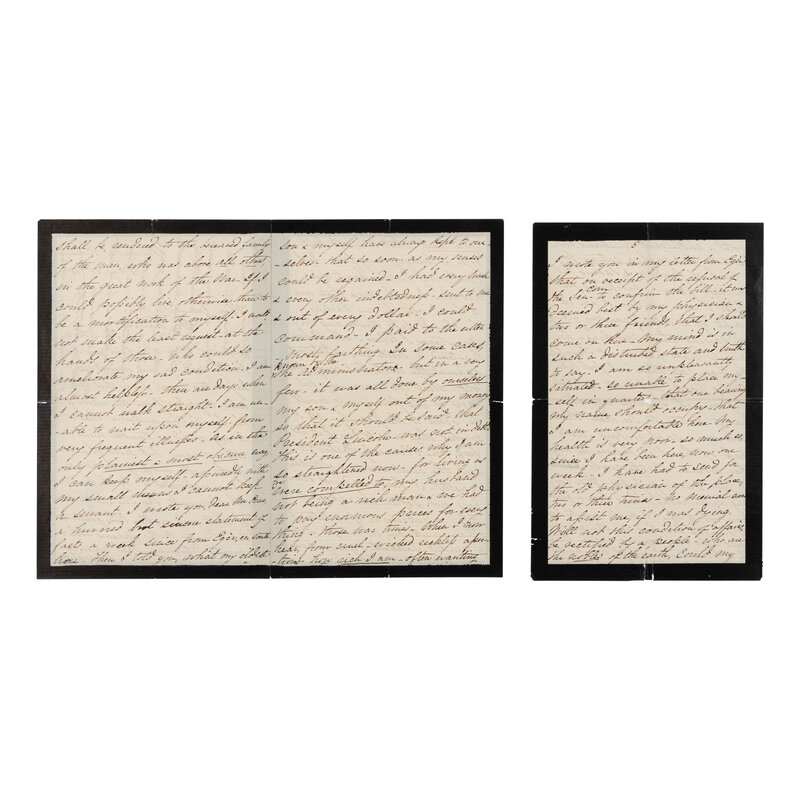 6pp., 8vo (8 x 5 in.; 203 x 127 mm). on black-bordered mourning stationery, creases along folds, minor marginal splits not affecting text.
