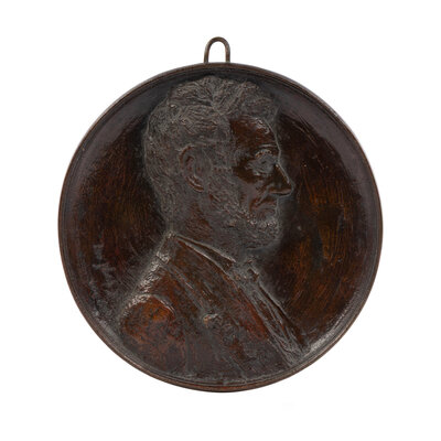 [With]: Nock. Bronze medallion of Abraham Lincoln. Profile view of Lincoln modeled after Anthony Berger's 1864 photograph, with inscription "Leo Nock Sc., Copy: 1914." Diam. 6 1/2 in.