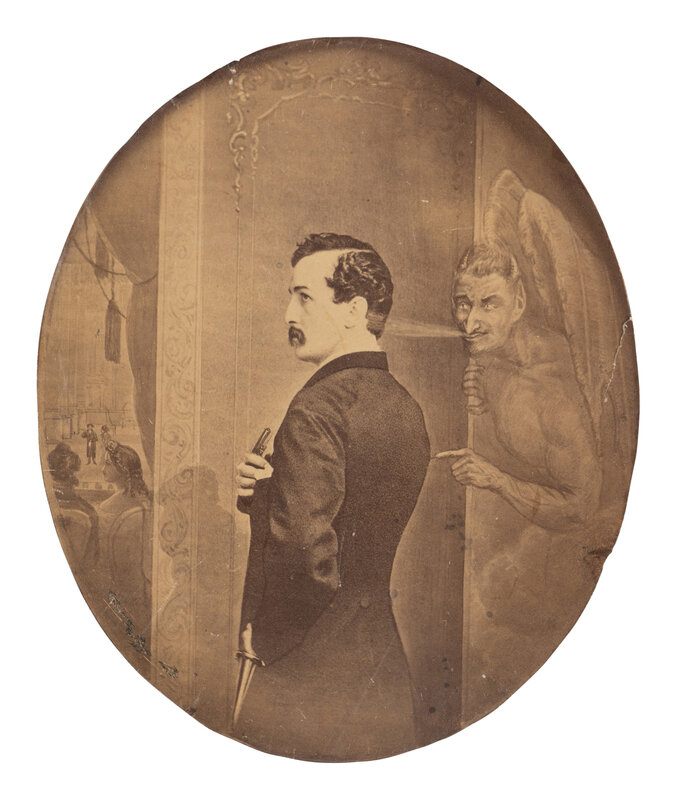 [BOOTH, John Wilkes (1838-1865)]. Large format albumen print depicting John Wilkes Booth tempted by Satan to murder Abraham Lincoln. [New York: Macoy and Herwig, 1865].