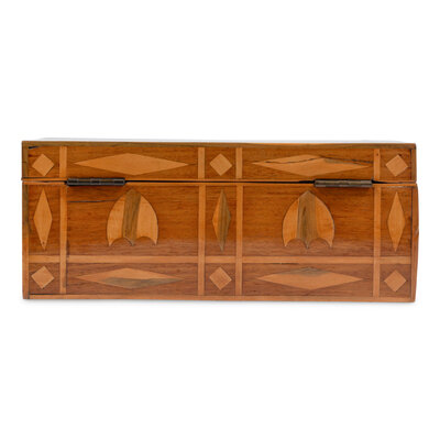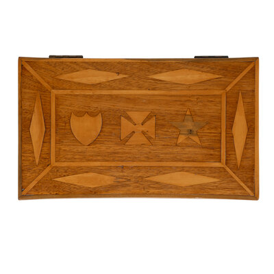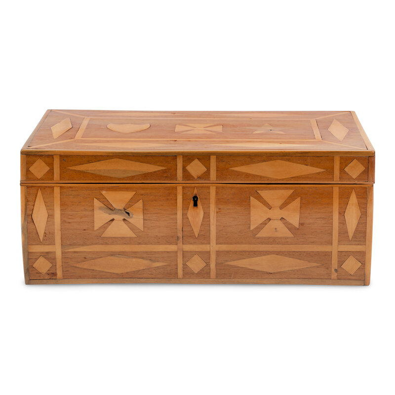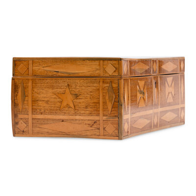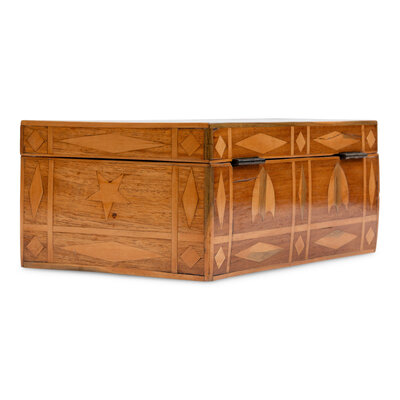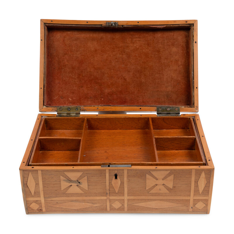 ONE OF FEW EXTANT MARQUETRY BOXES CONSTRUCTED BY LINCOLN CONSPIRATOR DR. SAMUEL MUDD, WHILE IMPRISONED AT FORT JEFFERSON.