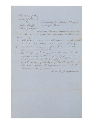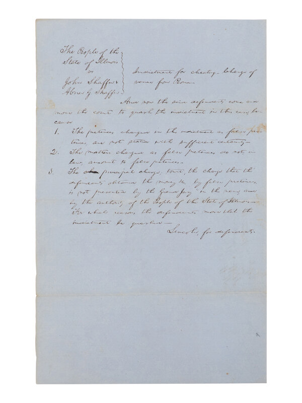 LINCOLN, Abraham (1809-1865). Autograph legal document signed ("Lincoln, for defendant"), [Tazewell County, Ill.], [filed] 4 October 1853.