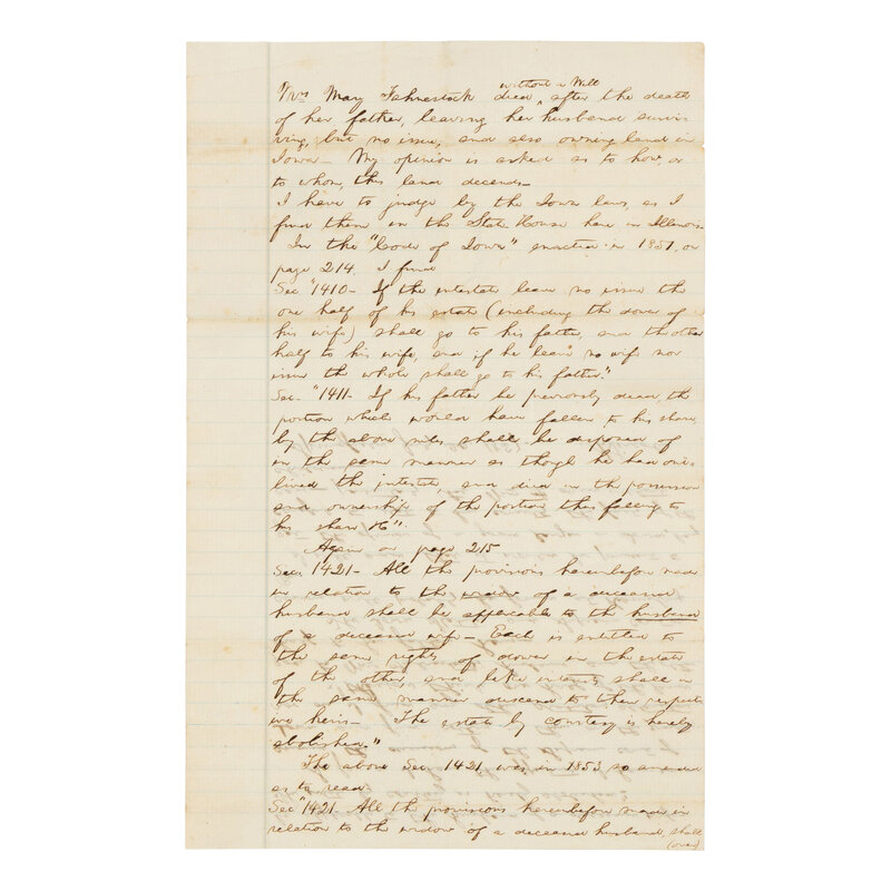 ABRAHAM LINCOLN MAKES A CASE FOR PROPER DISPOSITION OF LAND FOR A RELATIVE'S ESTATE.