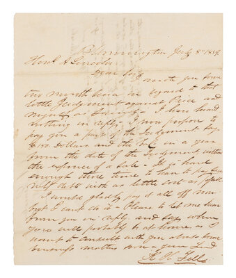 [LINCOLN, Abraham (1809-1865)]. Autograph endorsement, 8 lines, signed ("A. Lincoln") on the verso of a letter from Kersey H. Fell, Bloomington, Ill., 8 July 1859.