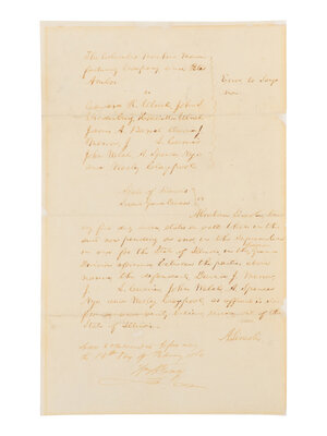 LINCOLN, Abraham (1809-1865). Autograph legal document signed twice ("A. Lincoln" and "Abraham Lincoln"), [Springfield], 13 February 1860.