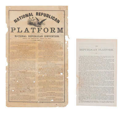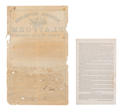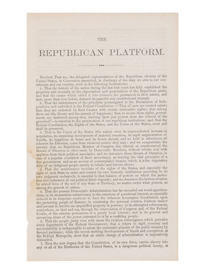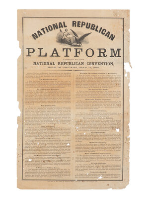 [With]: The Republican Platform. [Chicago: N.p.], 1860. 2 pp., 8vo (8 3/4 x 5 1/2 in). Circular printing of the above. (Minor soiling.)